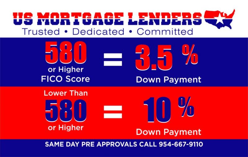 - 500 required for 90% financing or 10% down payment FHA mortgage Lender approvals.